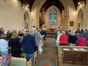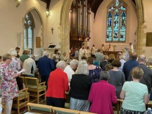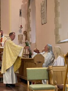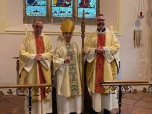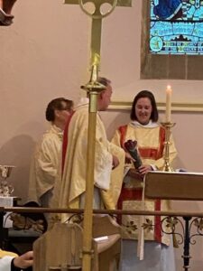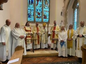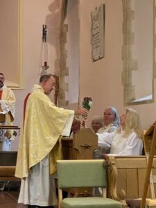 Fr Edward celebrated the 20th Anniversary of his ordination to the priesthood along with Fr David Sheen. A lovely Eucharist Service was held at St Catwg’s Church, Pentyrch on Wednesday 25 June at 6pm. Our Preacher was the Right Reverend Bishop of Llandaff, Mary Stallard and the church was full for the event. At the end of the service, Father Edward presented his wife Philippa, Bishop Mary, our Ministry Area Leader Rev’d Sandra Birdsall, Rev’d Mary Evans and the Rev’d Suzanne Brummell with red roses. He said it was the first time he’d ever given a Bishop flowers!
