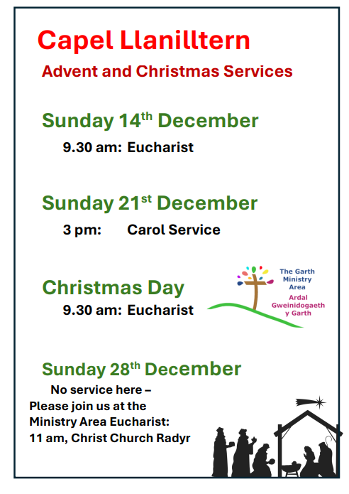 There will be a Ministry Area Eucharist to celebrate the First Sunday of Christmas at 11am on Sunday 28 December at Christ Church, Radyr. This will be the only service in the MA on this day.